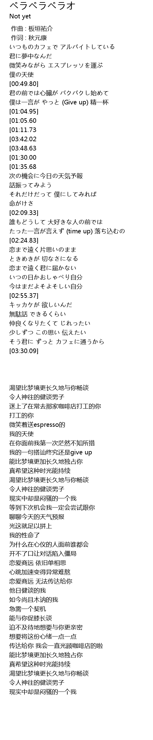| [00:09.52][03:48.63][01:23.59] | 憧れの ペラペラペラオ |