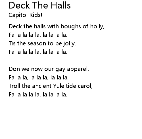 | Deck the halls with boughs of holly, | |
