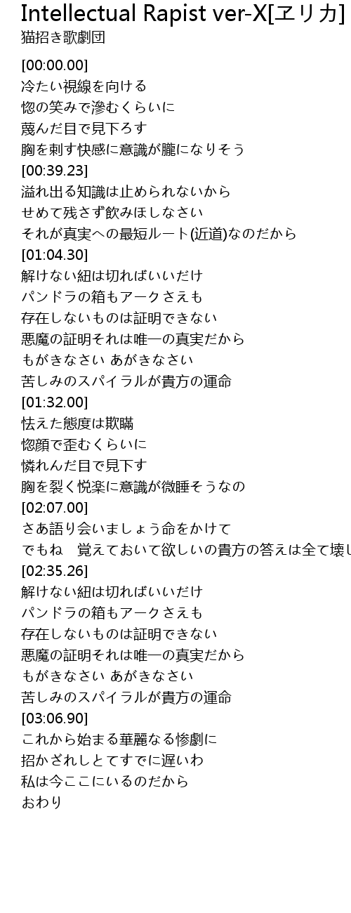 | [01:59.08] | 胸を裂く悦楽に意識が微睡そうなの |