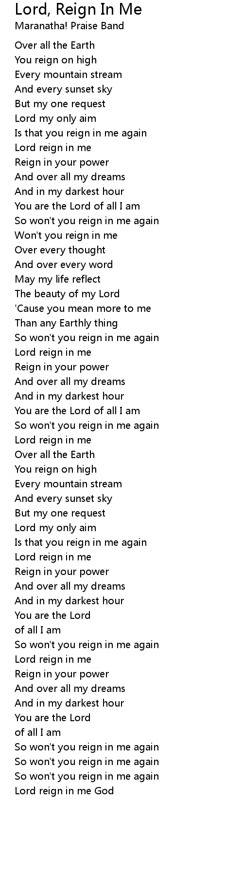 Lord reign in me God |