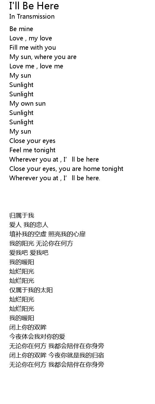 | [05:31.000] | Wherever you at , I' ll be here. |