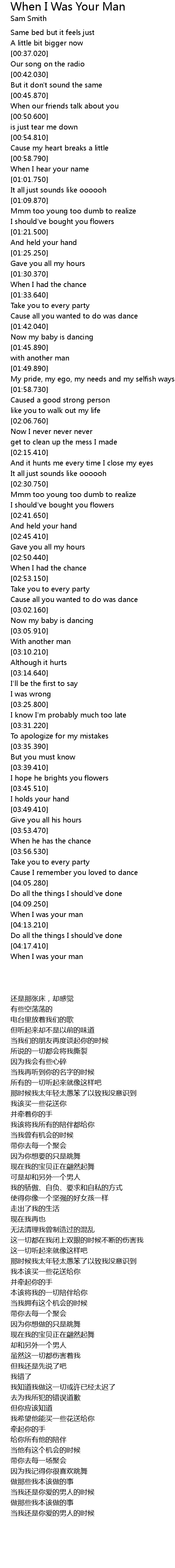 | [04:18.770] | When I was your man |