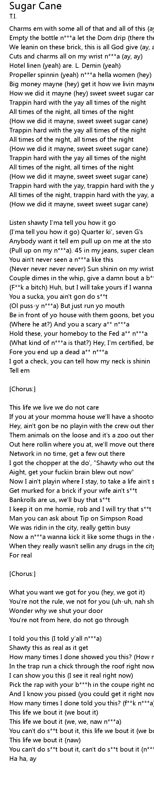 | How we did it mayne (hey) sweet sweet sugar cane | |