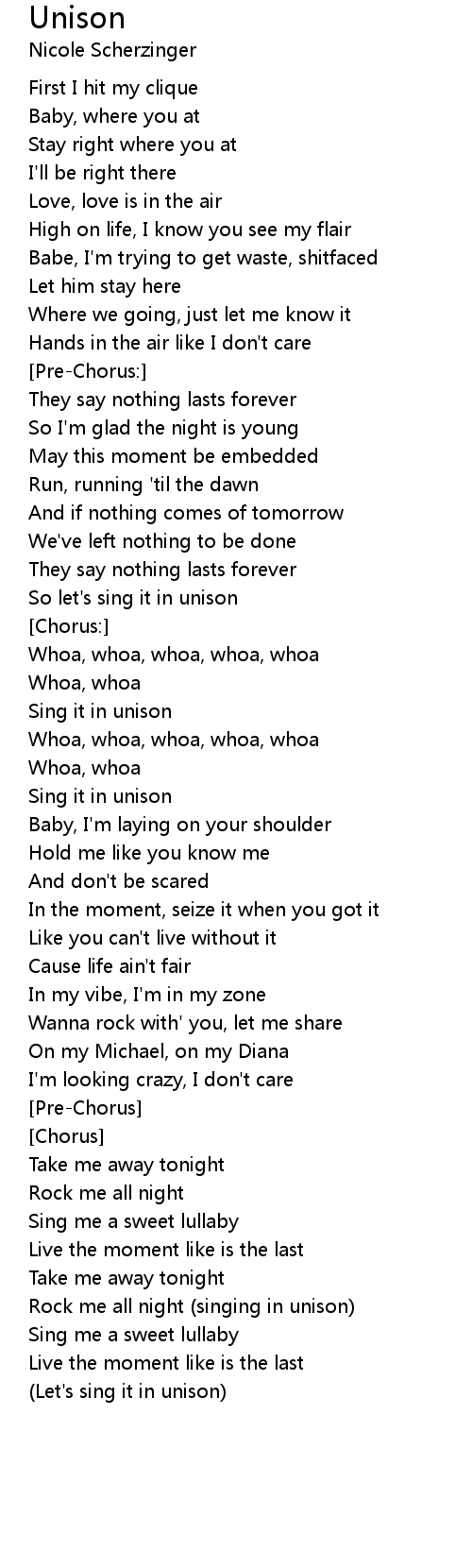 Rock me all night (singing in unison) |