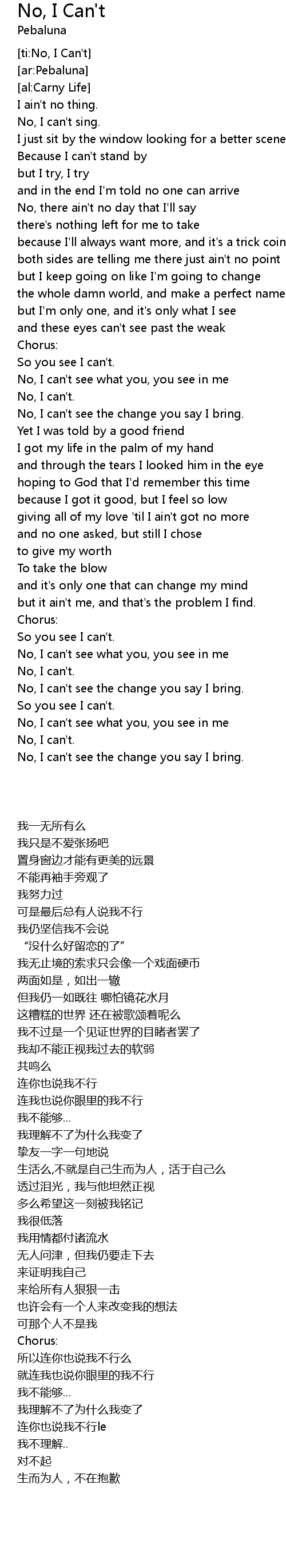 [ti:No, I Can't] |