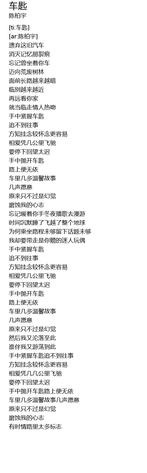 | [02:50.593] | 手中抛开车匙路上便无依 |
