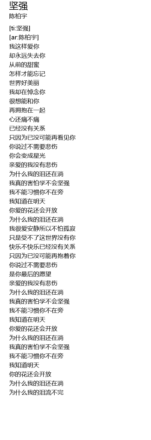 | [01:29.285] | 我真的害怕学不会坚强 |
