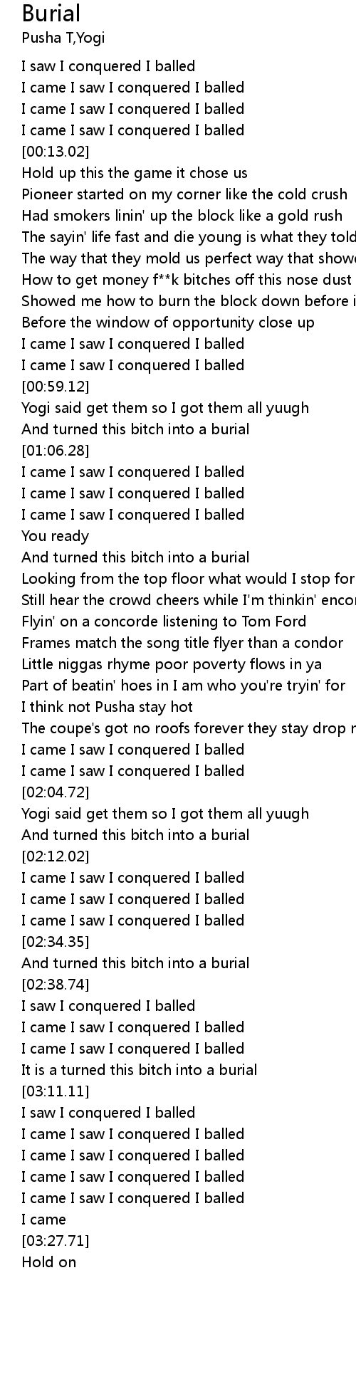| [01:45.58] | Little niggas rhyme poor poverty flows in ya |