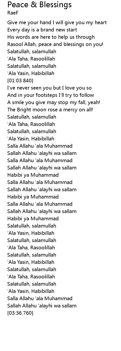 | [00:36.820] | Rasool Allah, peace and blessings on you! |