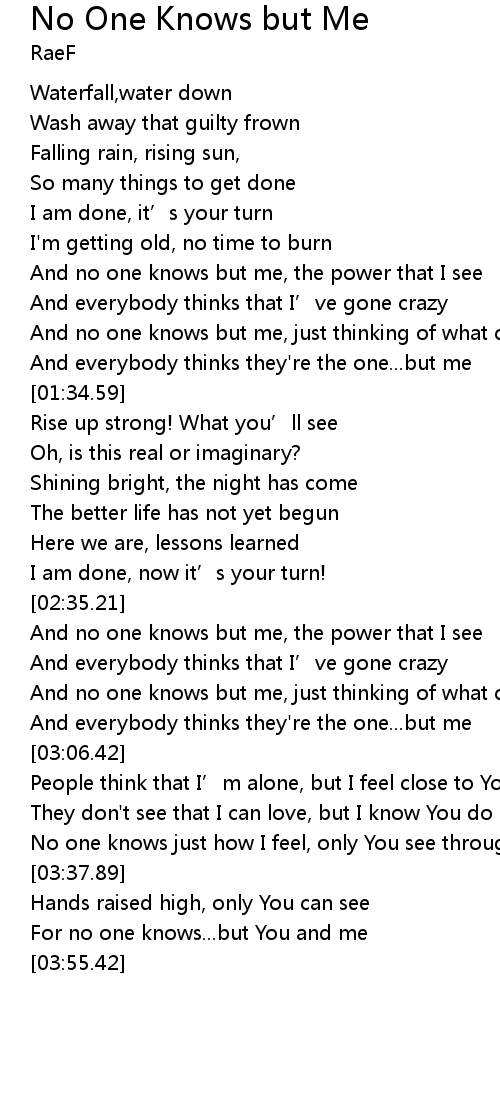 | [01:04.13] | And no one knows but me, the power that I see |