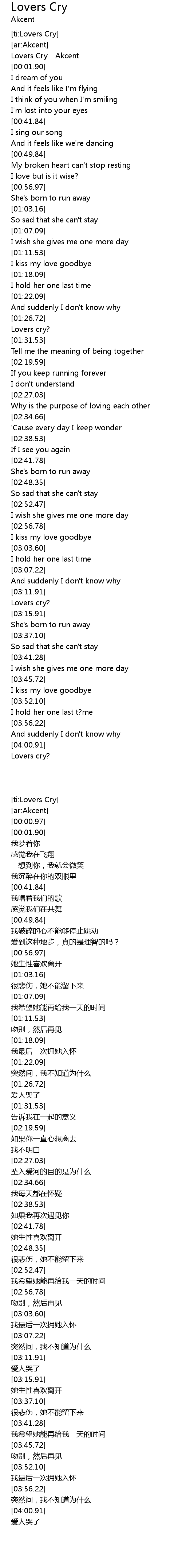 [00:00.97] Lovers Cry - Akcent