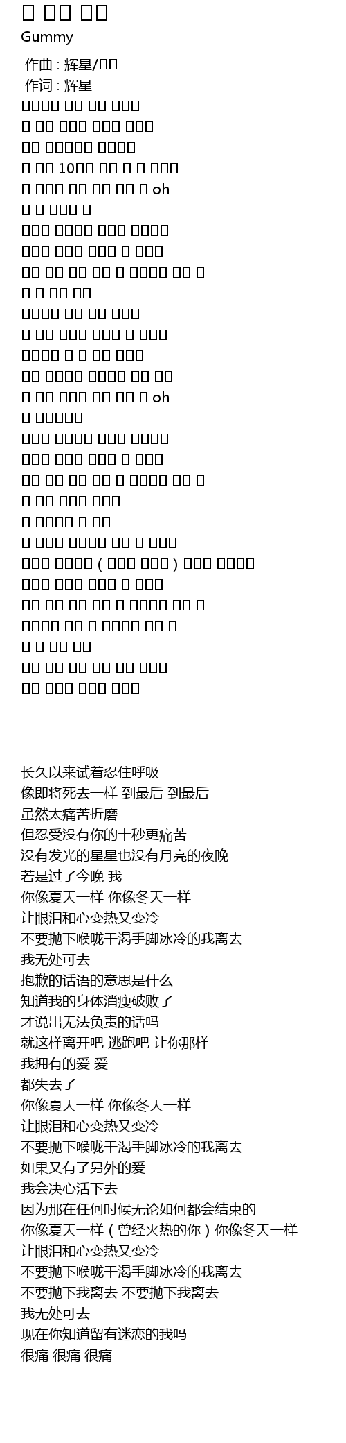 | [02:33.41] | 그대는 여름처럼(뜨겁던 그대가)그대는 겨울처럼 |