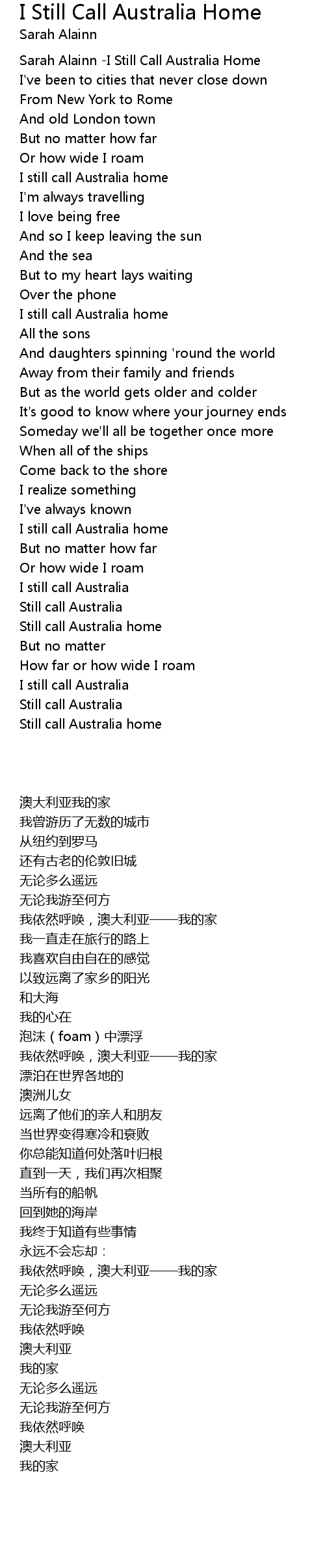 Sarah Alainn -I Still Call Australia Home |