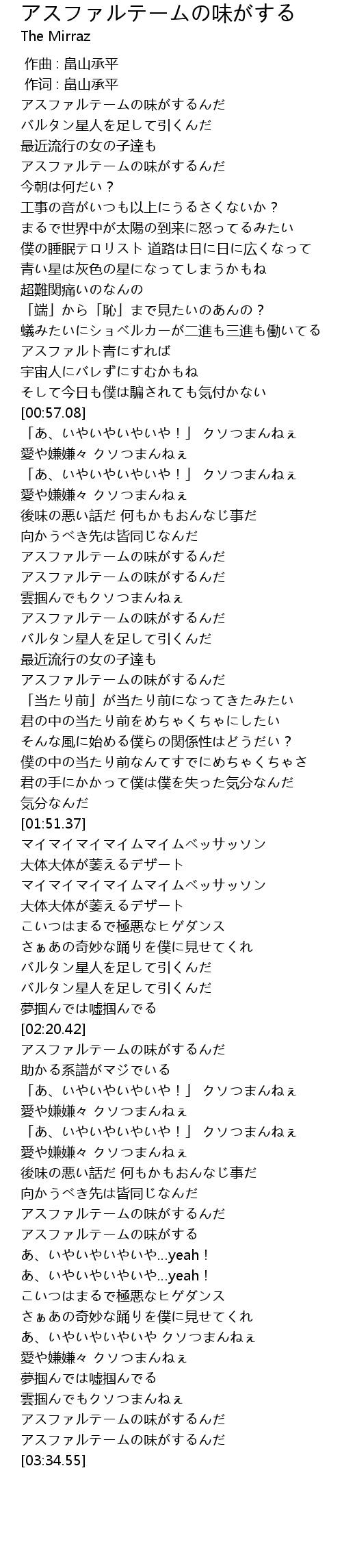 | [01:52.31] | マイマイマイマイムマイムベッサッソン |