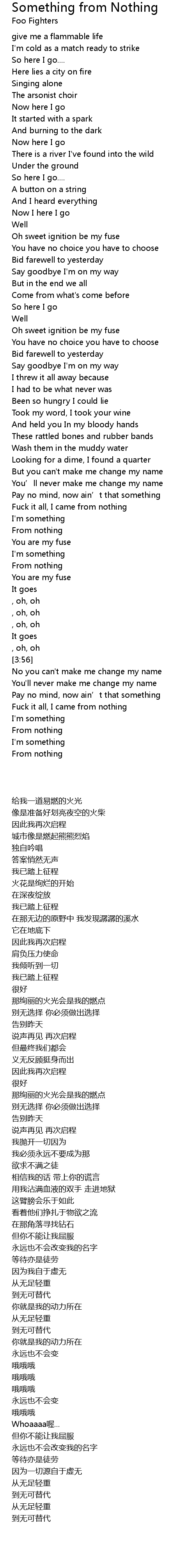 | Song | Something from Nothing |