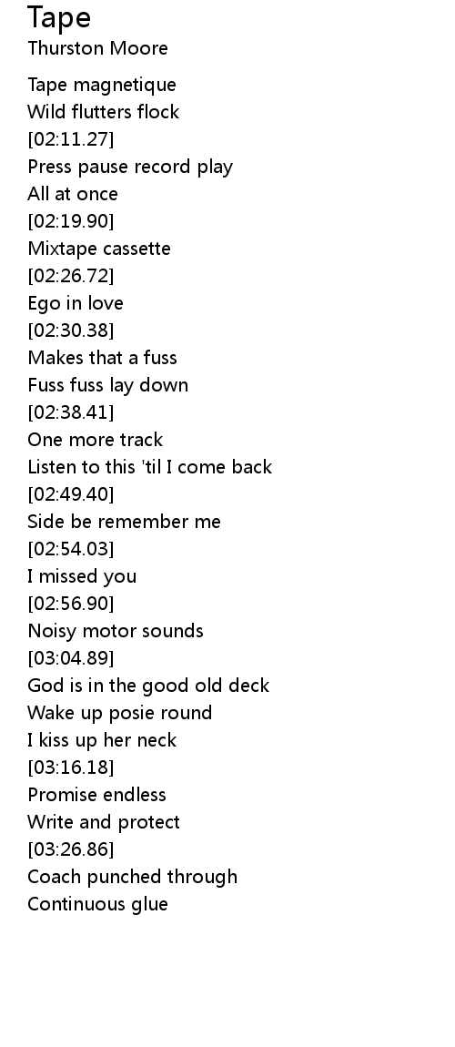 | [02:24.11] | Mixtape cassette |