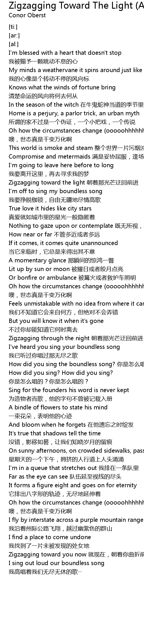 | [00:53.84] | Zigzagging toward the light 朝着那光芒迂回前进 |