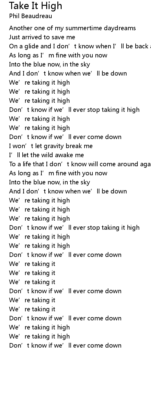 | Don' t know if we' ll ever stop taking it high | |