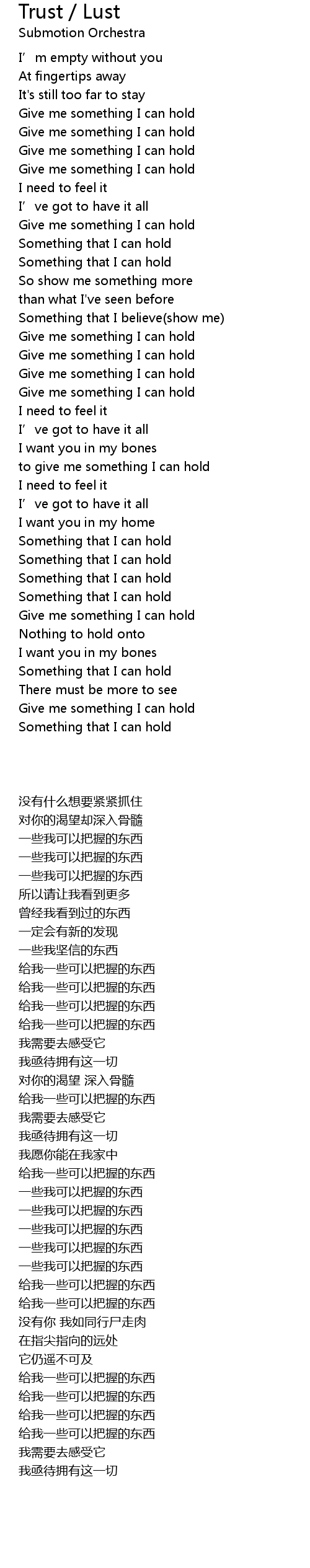 | [01:40.500] | Something that I can hold |