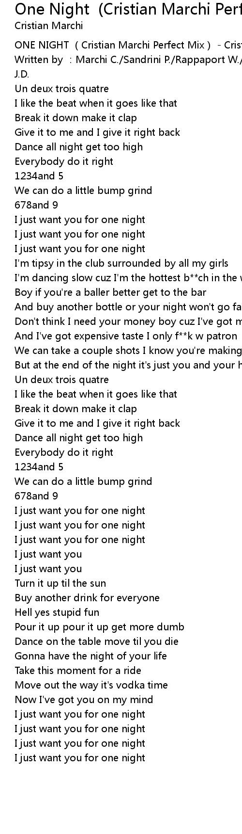 | [00:00.536] | ONE NIGHT Cristian Marchi Perfect Mix Cristian Marchi |