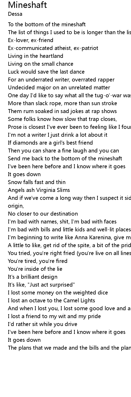 Send me back to the bottom of the mineshaft |