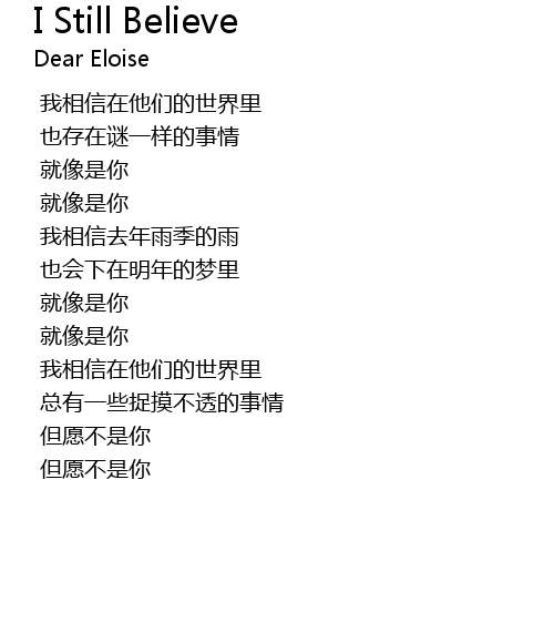 | [00:47.414] | wǒ xiāng xìn zài tā men de shì jiè lǐ |
