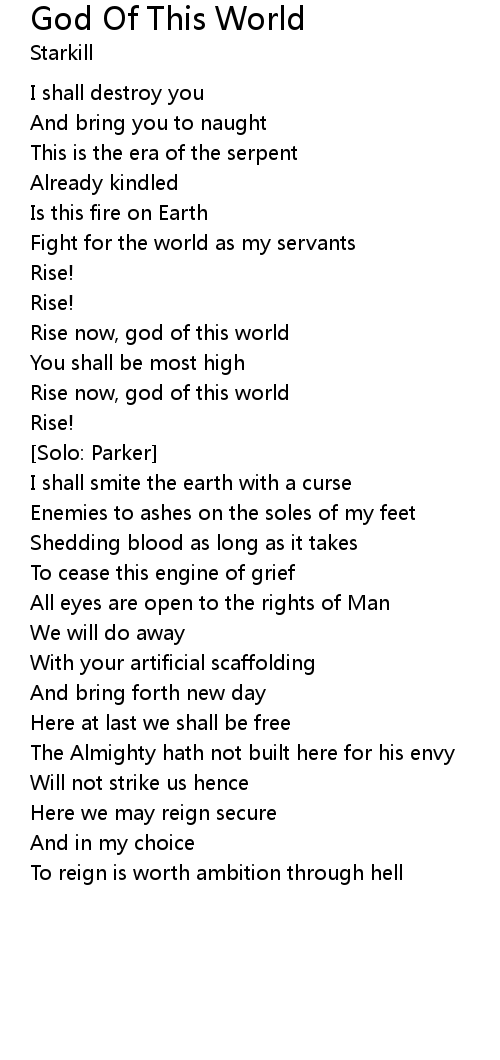 Rise now, god of this world |