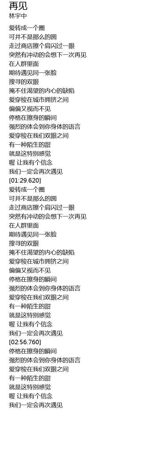 | [01:48.710] | 走过商店擦个肩闪过一眼 |