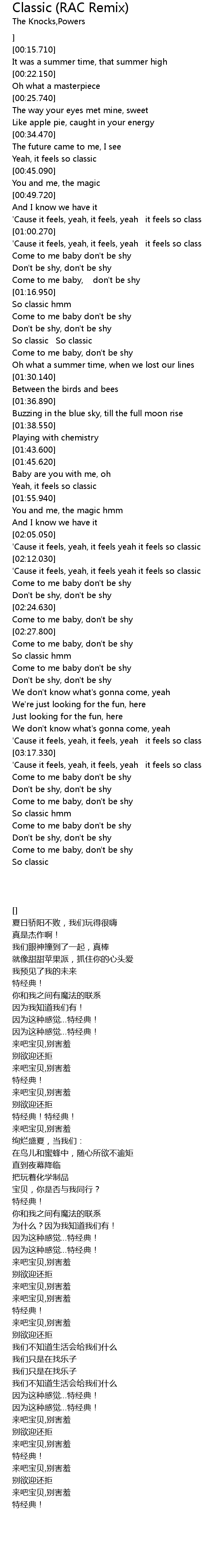 'Cause it feels, yeah, it feels yeah it feels so classic hmm |