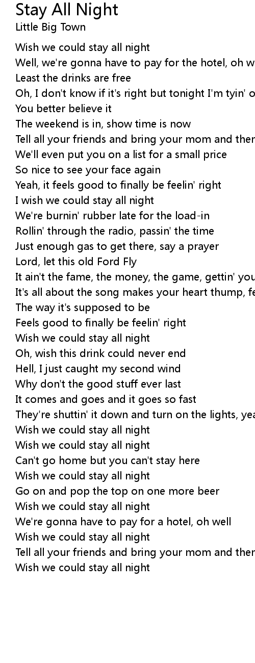 Wish we could stay all night |