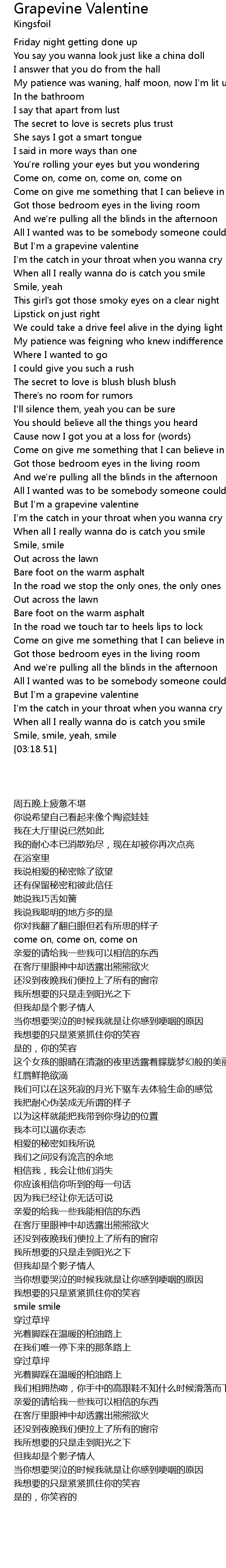 But I'm a grapevine valentine |