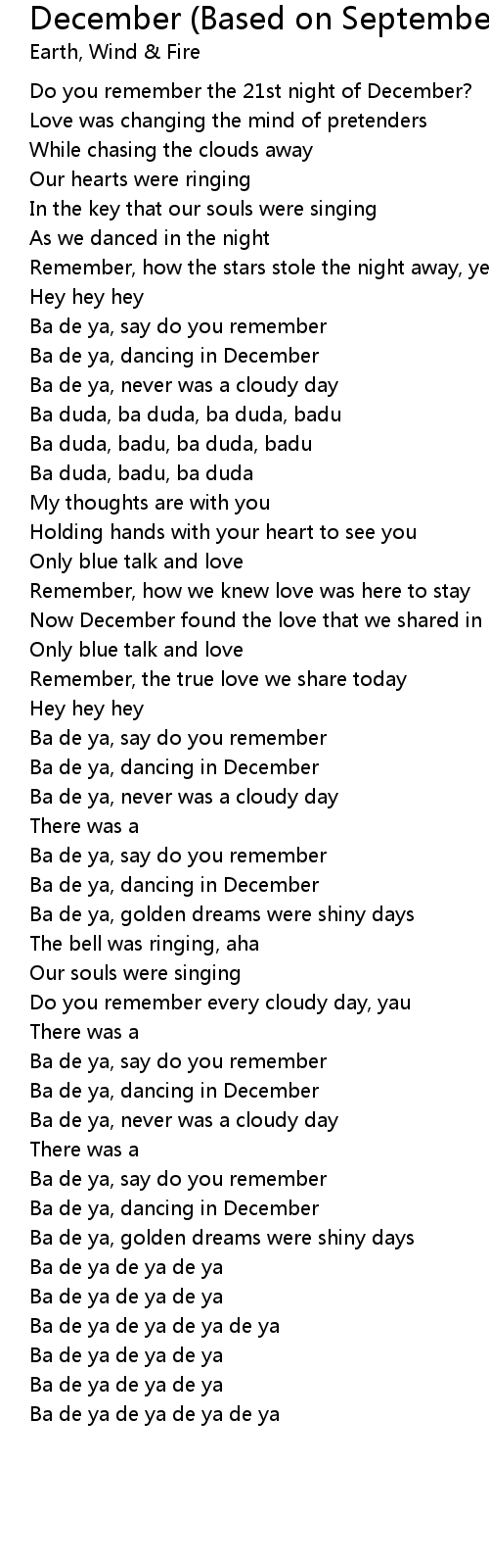 Ba de ya, dancing in December |
