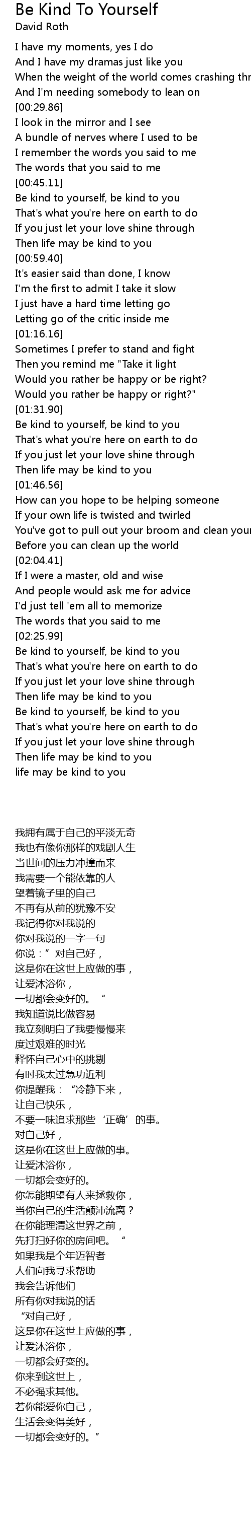 Be kind to yourself, be kind to you |