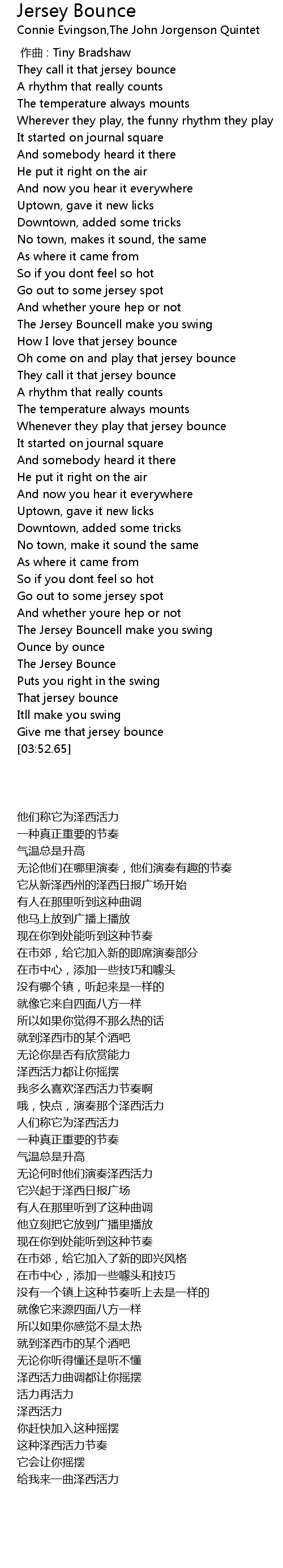 | [01:57.00] | Oh come on and play that jersey bounce |