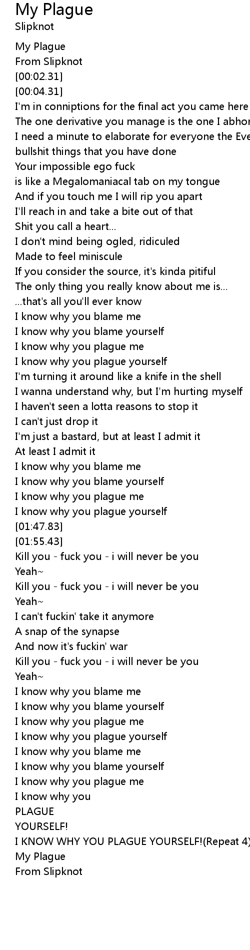 I KNOW WHY YOU PLAGUE YOURSELF!(Repeat 4) |