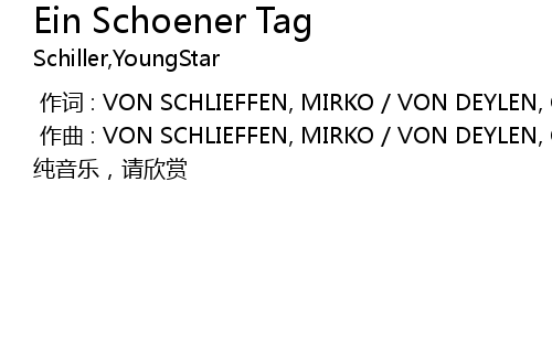 | [00:01.000] | 作曲 : VON SCHLIEFFEN, MIRKO / VON DEYLEN, CHRISTOPHER |