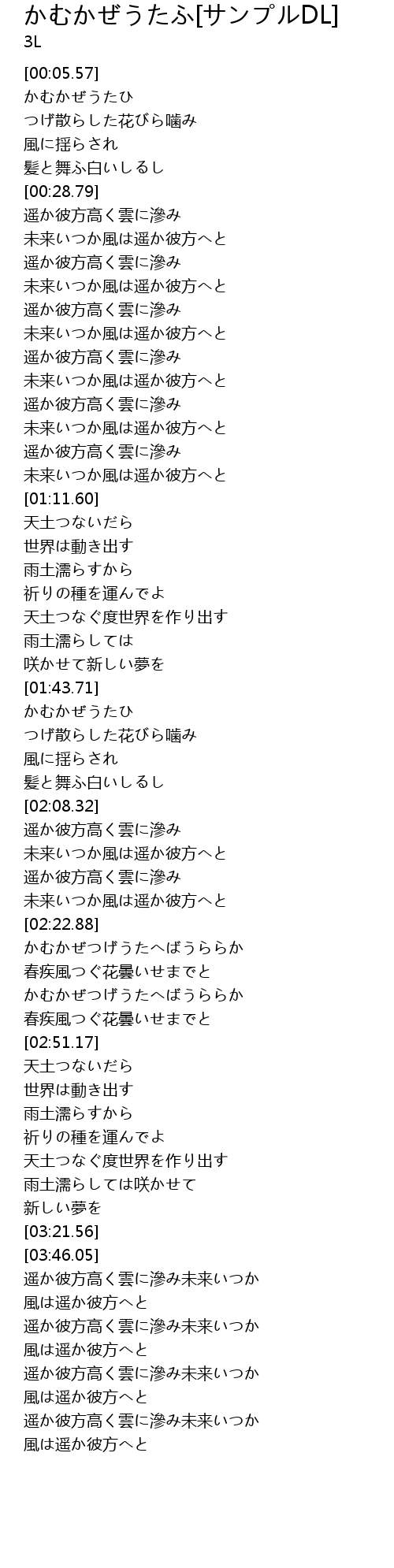 | [02:23.23] | かむかぜつげうたへばうららか |