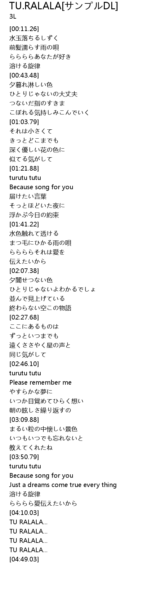 | [01:54.36] | まつ毛にひかる雨の唄 |