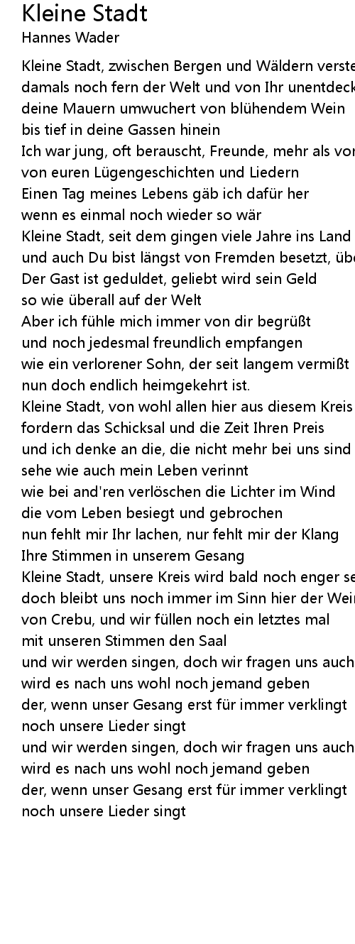 | Kleine Stadt, seit dem gingen viele Jahre ins Land | |