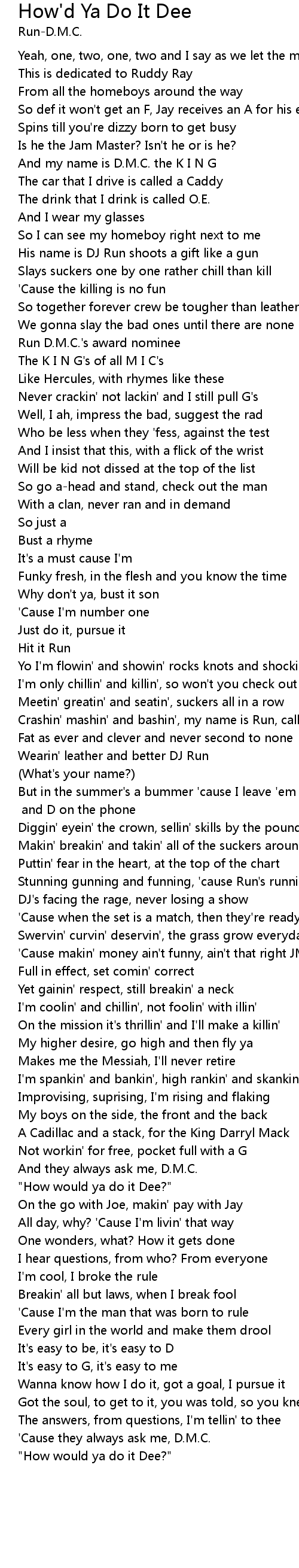 How'd Ya Do It Dee Lyrics