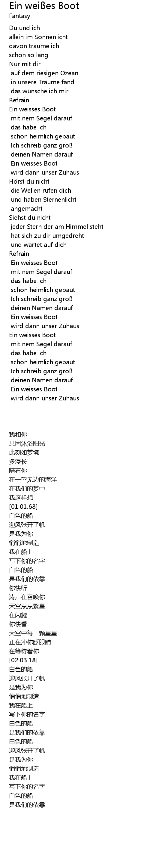 | [01:02.60] | Ein weisses Boot |