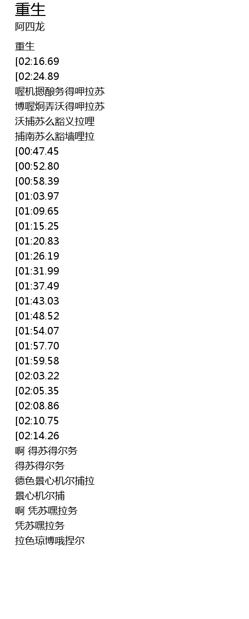 | [04:22.63] | 凭苏嘿拉务 |