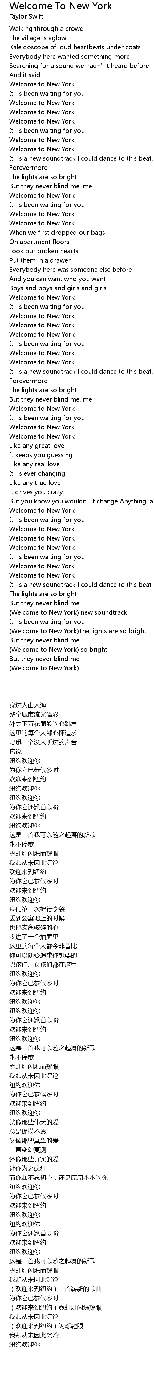 | [03:14.180] | Welcome to New York The lights are so bright |