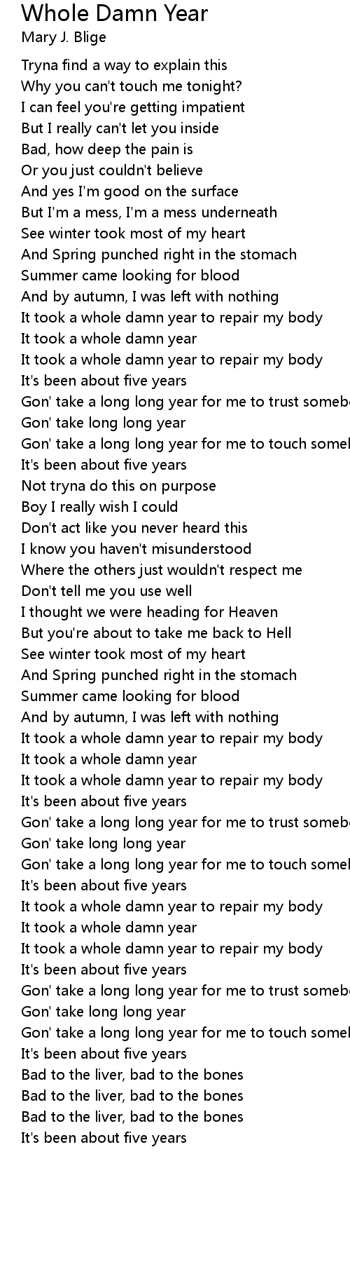 It took a whole damn year to repair my body |