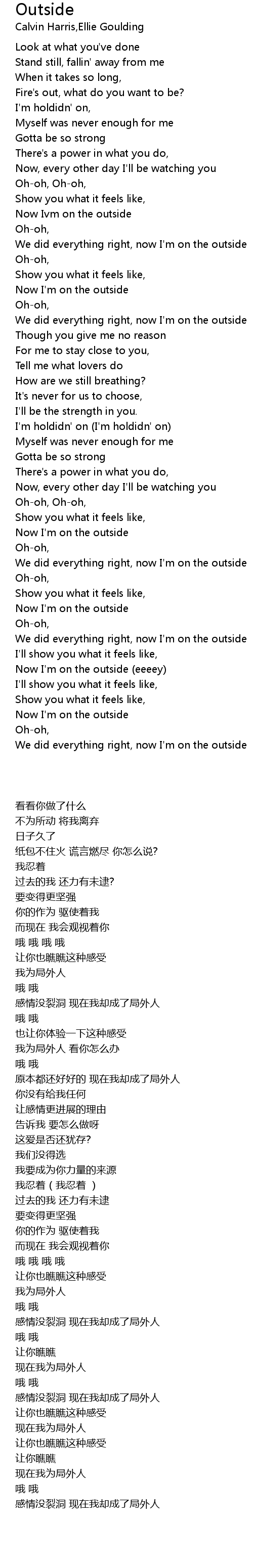 Now I'm on the outside |