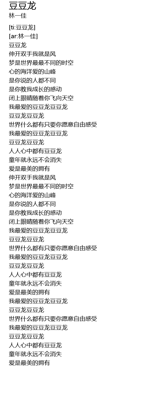 | [00:56.909] | 豆豆龙豆豆龙 |