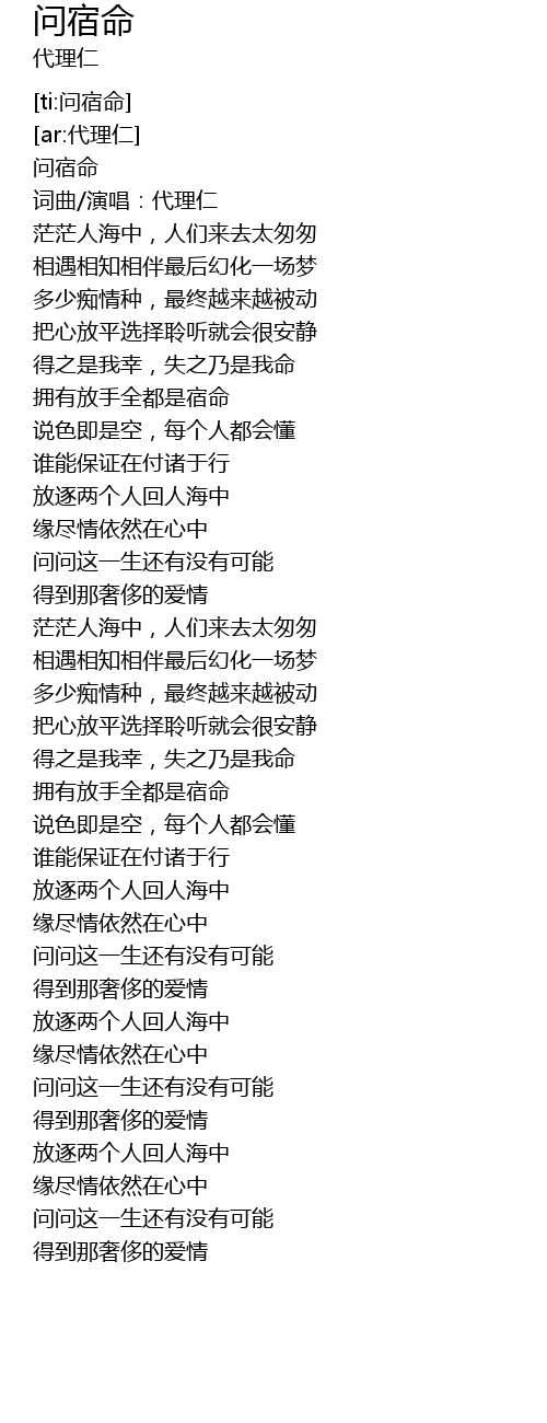 | [00:04.157] | cí qǔ yǎn chàng: dài lǐ rén |