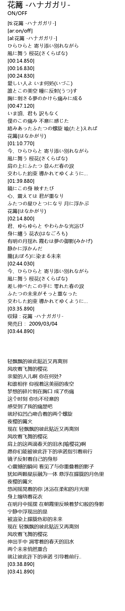 | [03:38.890] | 収録:花篝 -ハナガガリ- |