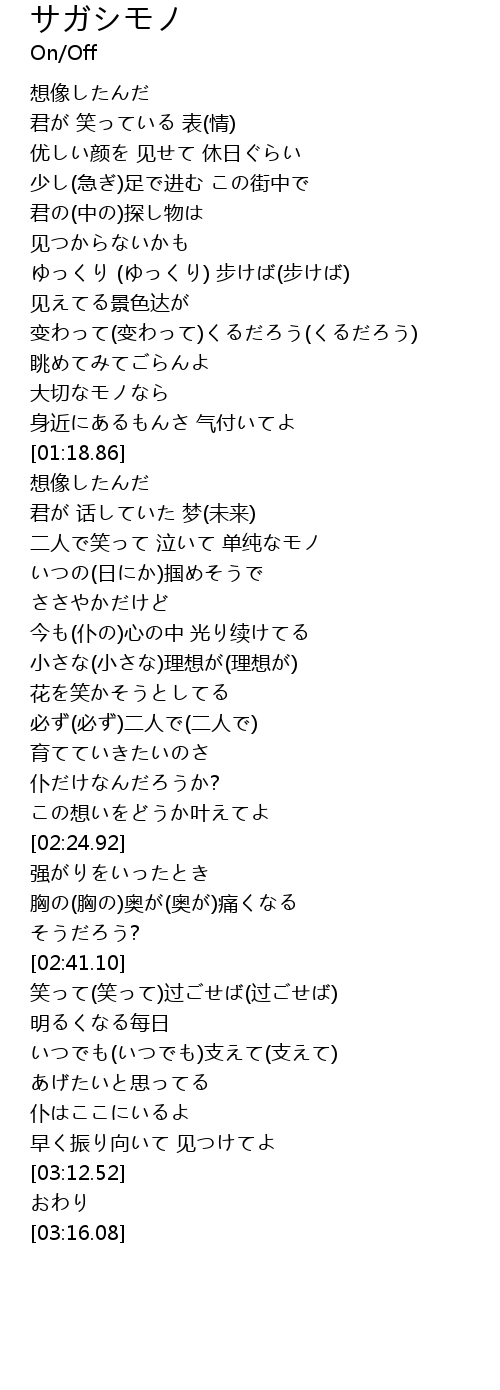 | [02:43.60] | 笑って(笑って)过ごせば(过ごせば) |
