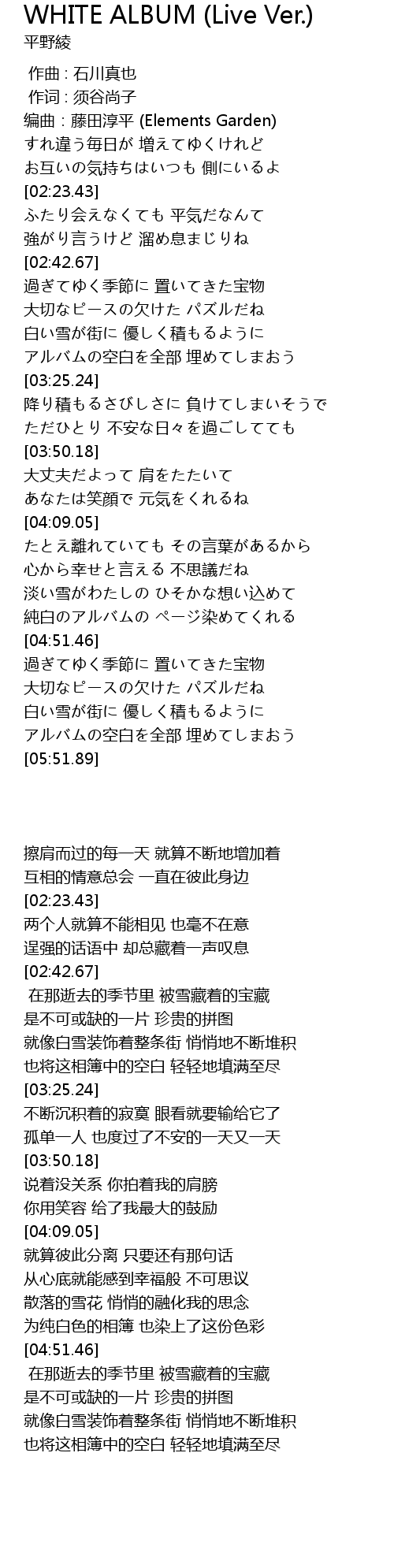 | [05:36.33] | アルバムの空白を全部 埋めてしまおう |